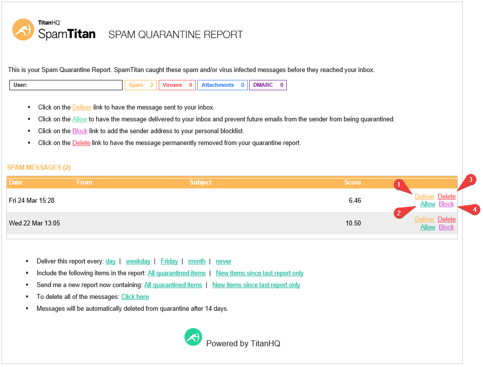 De façon quotidienne un mail de rapport SpamTitan vous est envoyé.