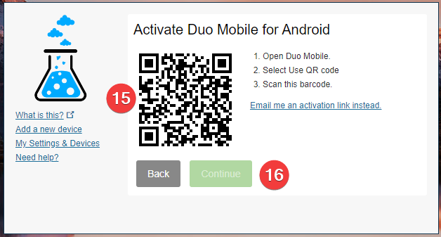 15 : Scannez désormais le QRcode depuis l'application DUO Mobile installé précédemment sur le nouveau natel