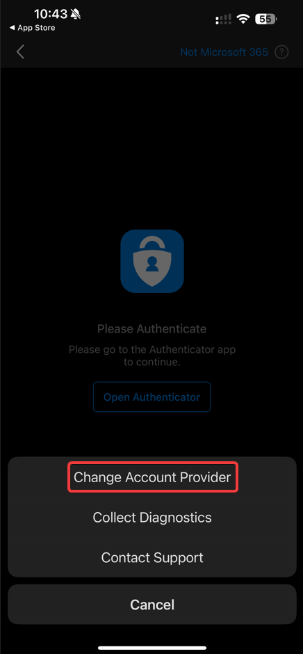 Puis ensuite sur "Change account Provider" ou "Changer de fournisseur" :