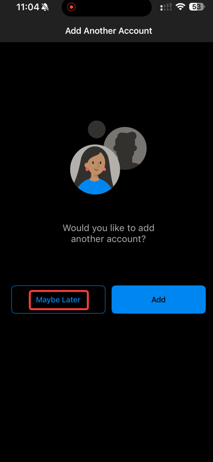 Cliquez enfin sur "Maybe Later" ou "Plus tard" pour ne pas ajouter d'autre compte mail.