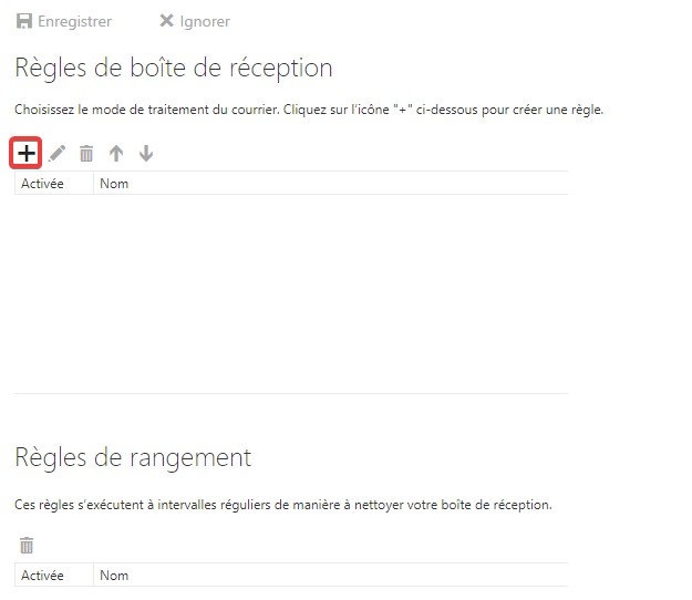 Au centre de la page, vous pourrez créer vos propres règles de trie automatiques