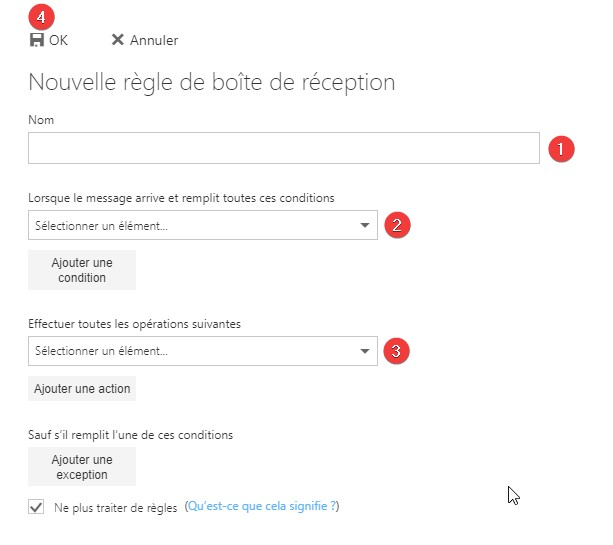 Vous pouvez créer plusieurs règles différentes en fonction des besoins d'automatisation de trie de votre boite de réception.
