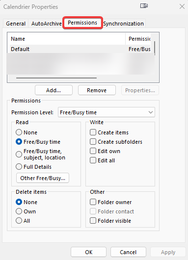 Gestions calendriers Outlook - Partages, permissions et ajout