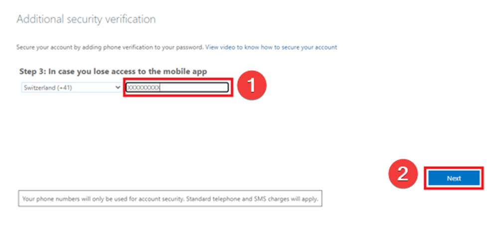 5. Saisir votre numéro de natel dans le cas ou vous perdiez l'accès à l'application DUO Mobile