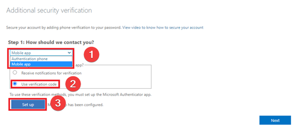 1Une :fois Sélectionnezconnecté, Mobilevous App2pourrez :choisir Choisirl'application ensuite "Utiliser le codepermettant de vérification"