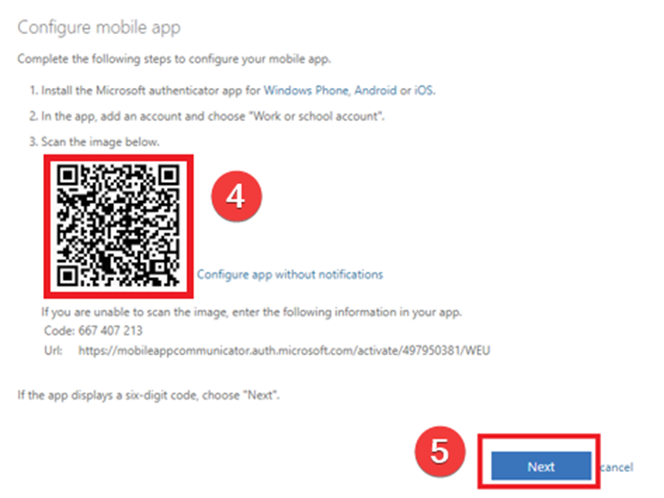 4 : Scannez le QRcode généré pour ajouter le compte sur votre Application DUO Mobile52 : Cliquez ensuite sur "Next" ou "Suivant"