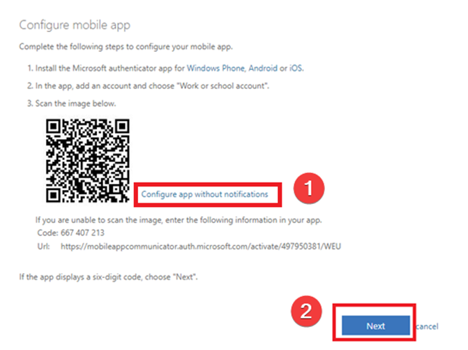 1 : Cliquez sur “Configure app without notifications”2 : Cliquez ensuite sur "Next" ou "Suivant"