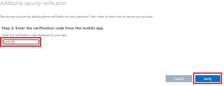Pour confirmer votre identité à l'étape suivante veuillez saisir le code deaffiché vérificationsous votre compte Microsoft, généré depuis l'application DUO Mobile