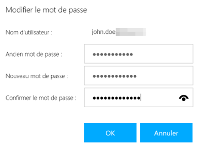 -> Votre nouveau mot de passe ne doit pas contenir votre Nom, Prénom et Domaine.