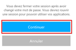 Cliquez ensuite sur "Continuer". Pour valider il faudra se re-connecter après le changement du mot de passe