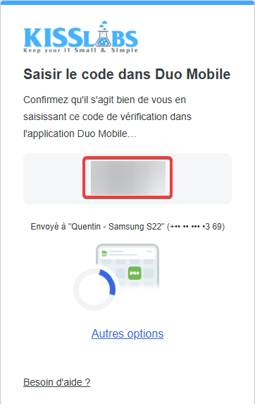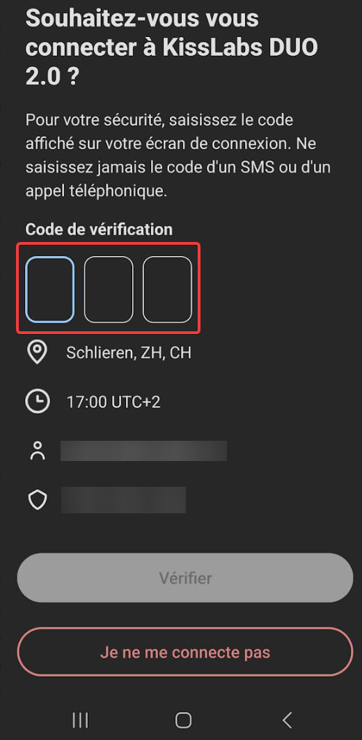 Noter les 3 chiffre du code DUO afficher à l'écran :